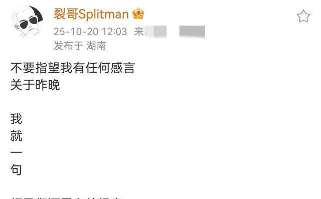 10日,苏醒用小号发文说:“不要指望我有任何感言,敢于昨晚,我就一句,领导们酒量有待提高。” 按理说,醒哥每次常驻的综艺结束后,他都会发一篇小作文做节目总结。 但这次《披荆斩》总决赛录完后,他却没有发,是有点奇怪,我猜可能是第五季还没有播完的原因。